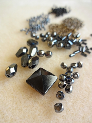JUGEMテーマ:ビーズメタリックな色合いのボヘミアンビーズに2ホールのアンティークビーズを組み合わせて・・・ クラシックな雰囲気のリングを作ります。