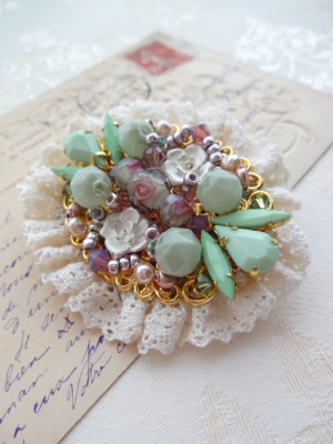 JUGEMテーマ:ビーズガラスのなかに薔薇の模様をとじこめたビーズが可愛らしいフェミニンな印象のブローチ ローズビーズのブローチ他にリングやチョーカーなどをご用意しました。 *aquadrop*