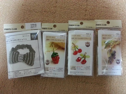 JUGEMテーマ:ビーズ 在庫がなくなる前に・・・ととりあえず購入してきました 大好きなパーツクラブのキット 簡単に作れるモチーフは果物がかわいい シュシュは前回ベージュだったので、ブラックを作ろうと思います まだ作成していないキットがかなりあるので、そろそろ本腰入れて作成します ビーズマニアで販売されているキットや、粘土のジュエルパテも買って作ってみたいです やりたいことたくさん物作りは楽しいです