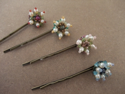 なにかハンドメイドしてますか? こんなお題が出ていたので乗っかってみました。 小物をいろいろ作っております。 2月のイベントに向けて 一番作っておきたいのが 羊毛フェルトのマスコットなんですが 先に出来たのはビーズのヘアピン。 金具が出てきたので 久しぶりに作りました。 青系の配色は初めてかも。 このモチーフ、 花弁の部分は淡水パールなんですけども 10年ぶりくらいに買い足したら 値段がずいぶん上がっていて びっくりです。 なので今回から価格を上げさせていただきます…。...