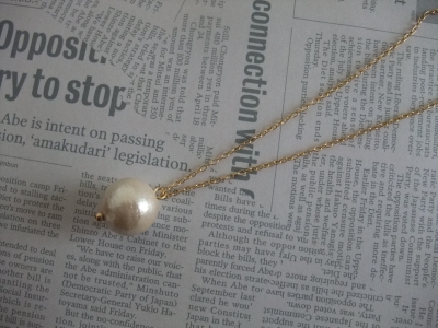 JUGEMテーマ:ビーズ 大きめのコットンパールを一つだけ使った、 これでもか!というくらい シンプルなネックレス。 コットンパールはとても軽いので ボリュームのあるアクセサリーに使われることが多いのですが 一つだけでも十分可愛いな〜と思いまして。 パールが引き立つように 細めのチェーンと合わせました。 どんなスタイルにも合わせやすいので 普段使いにいいと思います。 秋冬の濃い目のトップスに合わせると映えますよ。 モノ・つなぐ市にも出品して、 お買い上げいただきました