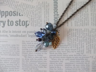 JUGEMテーマ:ビーズ あれから、青いのも作りました。 同系色のいろんなビーズを1つずつ使っているので この色、1つだけ余っちゃった… と、いうときに便利なデザインです(笑)