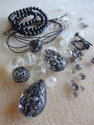 JUGEMテーマ:ビーズラリックガラスのようなアンティークビーズに個性的な透かし彫りのあるアクリルビーズを組み合わせてシックでモダンなネックレスを作ります。