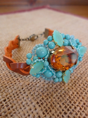 JUGEMテーマ:ビーズクリスタルストーンにスワロパールを使った繊細なモチーフに革紐を三つ編みにして・・・雰囲気のあるブレスレットを作りました。 アンティークビーズやシフォンの薔薇を留めつけたパステルカラーのふんわりとしたブローチ。 *aquadrop*