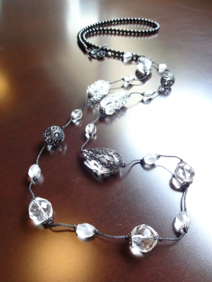 JUGEMテーマ:ビーズ本日新作をUPしました。レース模様のビーズがエレガントなロングネックレス。 ブラックレースのネックレス *aquadrop*