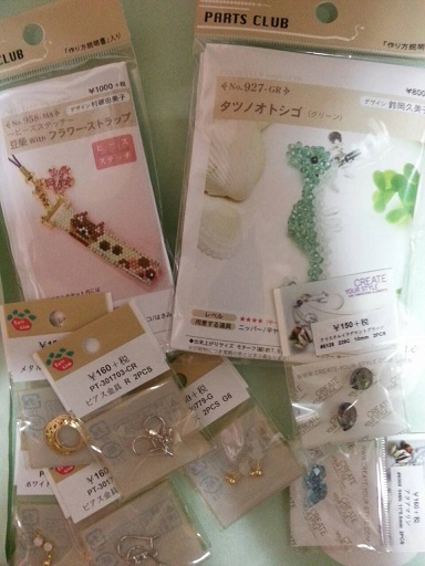 JUGEMテーマ:ビーズ 久々にパーツクラブに行って材料とキットを購入しました タツノオトシゴはキラキラしていてかわいいです 早く作りたいなぁ ピアスはちゃっちゃとスワロだけ通しました 涼しげなスワロを選んでバチカンではさんでピアスに通しただけです スワロはキラキラが綺麗 丸い金の輪は小さめで、セーラームーンの月みたいで気に入ってます 夏らしくちょとキラッとさせたい時につけよう
