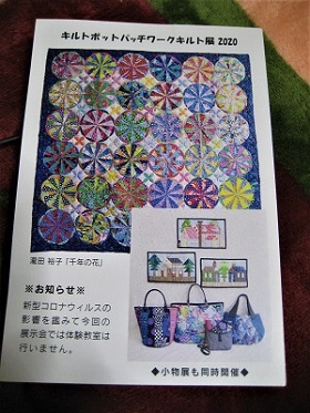 今日の天気は、晴れ・・・ 今日は「キルトポットパッチワークキルト展2020」に 行ってきました。 久しぶりのキルト展を楽しんで、 帰りにショップにも寄って、先染め布を少し買い (密状態のショップ、買う布だけ買ってさっさと退散) ランチはお蕎麦屋さんで、美味しいお蕎麦をいただいて。 お気に入りのシューズショップで、靴も買って・・・ 久しぶりのブラブラ〜〜〜、楽しかったです。 そして今日のパッチワークは Yさんのバッグが完成して、次もバッグ作りです。 それでは、また〜〜 JUGEMテ...