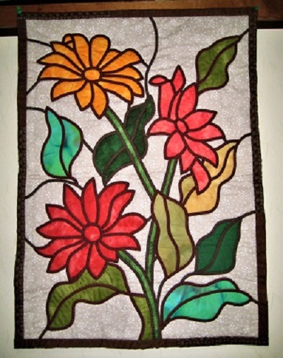 今日の天気は、晴れ・・・ 今日のパッチワーク画像は、 ルドベキアのステンドグラスキルトのミニタぺストリー。 サイズは、横 50cm。 縦 70cm。 久しぶりに作ったステンドグラスキルトですが とても楽しく作れました。 もう一枚マツリ途中です。 作ってみたいバッグも まだ布が決まらず考え中・・・ それでは、また〜〜 JUGEMテーマ:パッチワーク