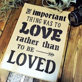こんばんは AS*です。 ステンシルシートの新作が完成しました♪ 『LOVE』 【 和訳 】 大切な事は 愛される事より 愛する事だったよ。 ちょっと可愛い感じに出来たかな? メインとなる「LOVE」の文字には 初めてのフォントを使ってみたけど 存在感があっていいかも〜♡ 木材にステンシルして パネル風に... なんていいんじゃないでしょうか? これで3種類 新作が作れたので そろそろminne...と思ってたら またまたカメオちゃんのカッターの 切れ味が...