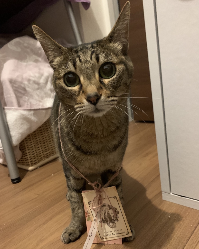 JUGEMテーマ:可愛いハンドメイド雑貨 ども、猫澤です♪ おやおや? 長女のモナちゃんがなにか首にかけていますぞ? 「おフランスの香りがするでしょ?」 ん?おフランス? あああ、それはぁぁぁぁぁ! 猫澤の大好きな、 jardin du minuitさんの タグ&ラッピン「グ」〜(^^)v はい、(3/27の記事)でもご紹介しました、 jardin du minuitさんのイラスト雑貨🌹 本当に、ため息がこぼれるほど素敵なのです。 ...