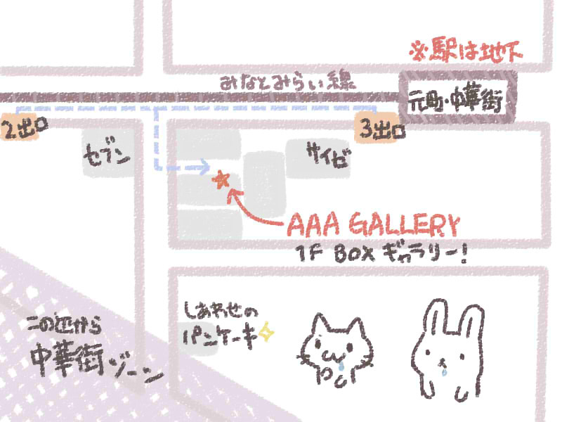 こんにちは、フーライです! 横浜中華街のAAA Galleryさんで4月1日より営業スタートするBOXレンタルに1年間お世話になる事になりました〜! 【AAA GALLERY】 営業時間 14:00〜19:00(※ギャラリーの企画初日・最終日で時間が変わる事があります) 休廊日 月曜・火曜 アクセス みなとみらい線「元町・中華街駅」3番出口から徒歩3分 簡単にですが、地図を描いてみました(。-∀-。) 地下の改札を出てぼーっと通路歩いてると2番出口に出ちゃう事あります(笑) それでも近いので大丈夫です!✨ セブンがある交差点か...