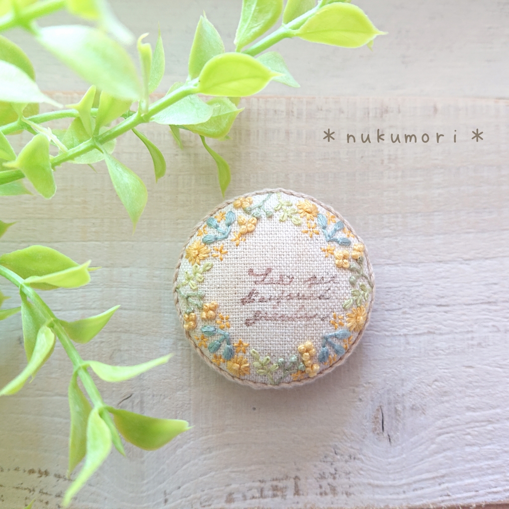 JUGEMテーマ:可愛いハンドメイド雑貨 こんにちは。 最近 まとめて記事を書いて 予約投稿しています。 『刺繍ブローチ *ナチュラル・ガーデン*』 黄色を基調とした ナチュラルな作品です。 周りに 黄色を基調とした花と 葉っぱを刺繡しました。 中央には 英字のスタンプを。...
