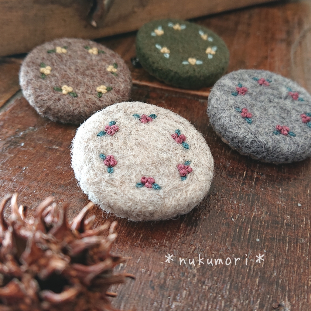 JUGEMテーマ:可愛いハンドメイド雑貨 こんにちは☀ 昨日は 風が強くて 気温より寒く感じました🥶 新作のご紹介です。 『羊毛フェルトのシンプルブローチ *お花*』 落ち着いた色合いの 冬らしいブローチです。 久しぶりの羊毛フェルト。 いくつか試作して 何...