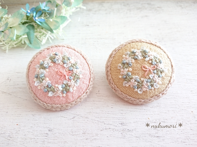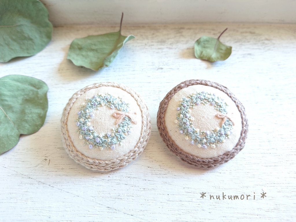 JUGEMテーマ:可愛いハンドメイド雑貨 こんにちは。 ここ3日間 ずっとパソコン作業です(^_^;) 明日もかな・・・。 『刺繍ブローチ *青い実のリース*』 土台のコットンリネンを 久しぶりに色つきで制作しました。 余計に色合わせが難しかったです・・・。 最近は くるみボタンではなく つつみボタンを使...