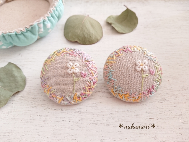JUGEMテーマ:可愛いハンドメイド雑貨 こんにちは。 まだ台風の影響が残っていて 風が強いです。 今日は ナチュラルな刺繍ブローチを 2種類ご紹介します(^−^) 『刺繍ブローチ *お花畑*』 コットンリネンの土台に 刺繍糸を思いつくまま ランダムに刺繍した イラストのような作品。 ...