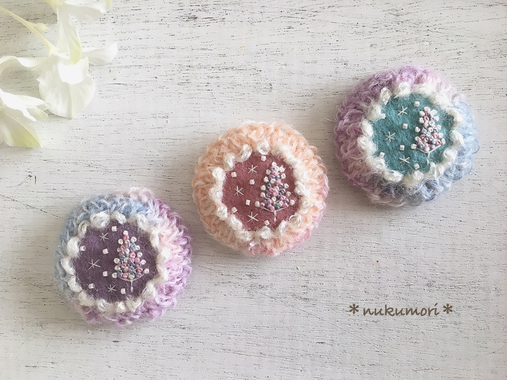 JUGEMテーマ:可愛いハンドメイド雑貨 こんにちは。 梅雨の季節ですが 昨日今日は とても良い天気です☀ 『ふわふわ刺繍ブローチ *TREE*』 コットンリネンの土台の布に フェルトを縫い付けて オリジナルデザインの刺繍をしたブローチです。 雪が降る中に立つ ピンクとブルーの飾りがついた ホワイトツリーを...