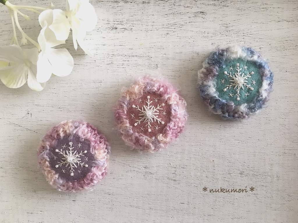 JUGEMテーマ:可愛いハンドメイド こんにちは。 このところ 寒暖差が激しい日が多いですね。 体調に気をつけてお過ごしくださいね(^_^) 『ふわふわ刺繍ブローチ *雪の結晶*』 前回の生地のブローチと同じく コットンリネンの土台の布に フェルトを縫い付けて オリジナルデザインの刺繍をしたブローチです。 ...