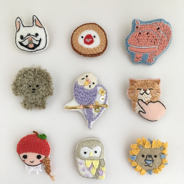 JUGEMテーマ:可愛いハンドメイド雑貨 イヌやネコやトリや キノコやハコフグや古墳も! 他にも、クロスステッチのアカゲラの刺繍額や、 ブランコに乗った柴犬のリースや、 立体刺繍の多肉植物の鉢植えなど、 ブローチじゃないものもあります♪ はじめての和歌山なので、自己紹介の意味もこめて これまでの作品や代表作のようなものを中心にしました。 観てもらえたらうれしいです♪ 期間中、通販も対応されているようなので、ぜひ! ...