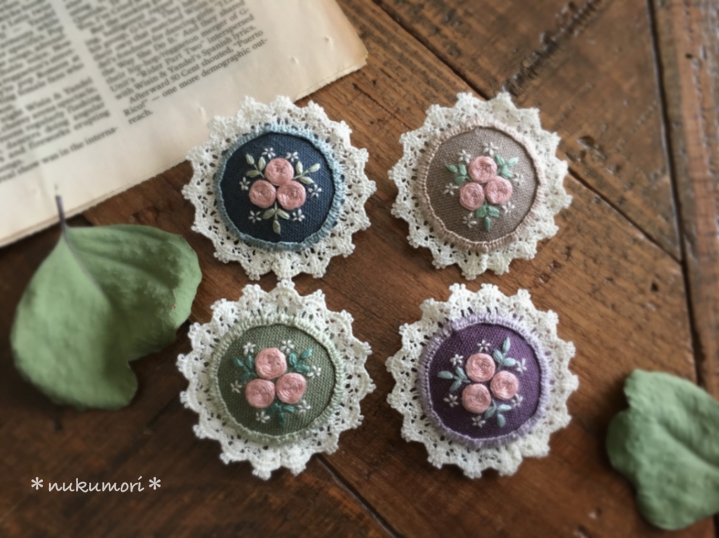 JUGEMテーマ:可愛いハンドメイド雑貨 こんにちは。 朝晩はまだ冷え込みますが 日中は日差しが暖かいですね。 花壇の花も徐々に咲き始めて 毎日楽しみです♪ 今日は刺繍ブローチのご紹介です。 落ち着いた印象の バラの刺繍ブローチ。 刺繍糸の色は同じでも 土台の色が変わると 雰囲気も変わります。  ...