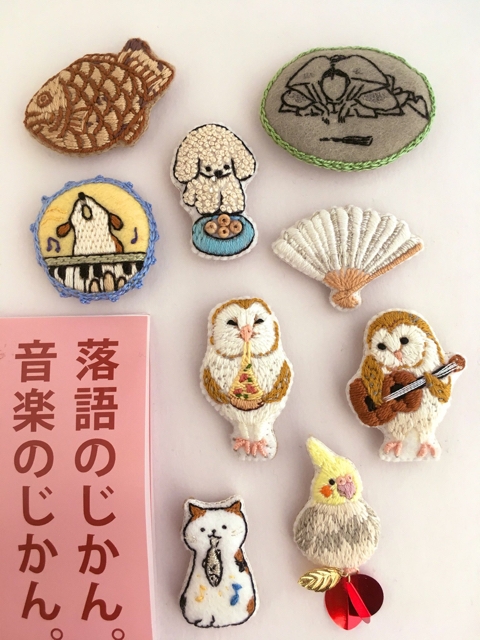 JUGEMテーマ:可愛いハンドメイド雑貨 レストランをテーマにした、昨年11月の銅版画家 大越順子さんとの二人展、 ギャラリーさんのご厚意で再オープンして頂きました! 落語会と音楽演奏とチーズを楽しめるイベントの中、 わたしの刺繍ブローチも置いてもらいました。 新作は、 落語っぽいもの、 あんこがちょこっとはみ出た たい焼き、 音楽や食べてるどうぶつたち・・・ メンフクちゃんなど数点は、丸い額に入れてもらって展示したり♪ ...