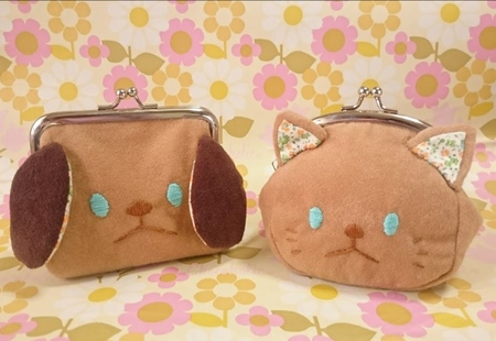 わんこ と にゃんこのがま口を作りました* マチありなのでたーっぷり入ります。 目と鼻は刺繍にしたんだけど、もうちょっと可愛くならないかなぁ。うーむ この生地いっぱいあるから色々作ってみよう!