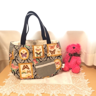 JUGEMテーマ:handmade JUGEMテーマ:可愛いハンドメイド雑貨 新作のマチ付きポケットいっぱいバッグ第2号完成です!! 前回の試作品、ポケット位置や数で使い勝手が良く、 マチもたっぷりあるのでとても使いやすいです。 と、いうことで第2号! 可愛い蝶と薔薇の生地とギンガムチェックを合わせてみました♪ マチの両サイドのポケット☆ 内布はシンプルにツイル地の生成りを使用しています。 内ポケ...