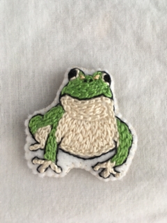 JUGEMテーマ:可愛いハンドメイド雑貨 こっちをみているアマガエル ずっと前から作ってみたかったカエルですが、 いつものようにリアルとデフォルメとで迷ってしまい、 どっちつかずになってしまいました。 (図鑑借りて、アマガエルとシュレーゲルアオガエルの違いを初めて知ったりしたけど^^) んー、なんだろう。 葉っぱの傘もたせたり、キノコにのせたり、王冠かぶせたり、 あ、しずくのビーズをつけてもよかったかー! シンプルなだけに、 ...