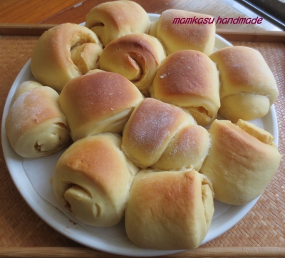 JUGEMテーマ:mamkasu-handmade 奄美のさとうきびから作る黒糖を パンに練りこんで作っているお店はたくさんあって、 mamkasuも挑戦したいな〜と常々思っていました どういう風につくったら黒糖のつぶが残るのか… まだまだ試行錯誤中ですが、 今回は2次発酵の前に、生地を伸ばし、 そこにパラパラと砕いた黒糖をのせ、 くるくるとまいて2つに切りました するとこんな感じです。 アップすると〜 すこしつぶつぶがわかるかなぁ〜 黒糖は高い温度でなくても溶けやすかったです。 今回もかなり溶けちゃっ...