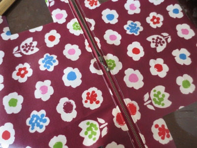 JUGEMテーマ:mamkasu-handmade きのうのつづきで〜す。 ファスナーがきれいにつくとうれしいですね。 ここで… ビニールコーティング布は、ミシンの送りがうまく進まないことがあります。 縫う時に後ろで少しだけ引っ張りぎみにしてあげるといいです。 もし、「うーん、難しいな〜」という方はビニール面にパウダーを少しつけて縫うと 送りがスムーズです。 パウダーは完成したら硬く絞った布で拭き取れば気になりませんよ。 では次に立体的に縫い上げていきましょ。 底を縫ったら左右を縫います。 その時に...