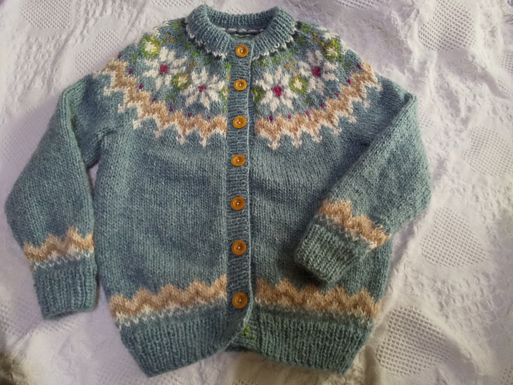 (*´艸`*) じゃーーん! 3枚目のロピーカーデが出来上がりました〜! ↑写真の色目が薄いけど、色は1232の水色がメイン。でも可愛くできた〜!えへへ。 ↓こっちは青すぎ? 難しいな〜。 糸はアラフォスロピーです。 デザインは毎度ながら、持っている本のいいとこどりのオリジナル。 サイズはゆったりLサイズでつくっています。が、ちょっと丈長め。お尻がちょうど隠れる長さです。 一番下のボタンの下には、緑の四葉のクローバーがちらっ...