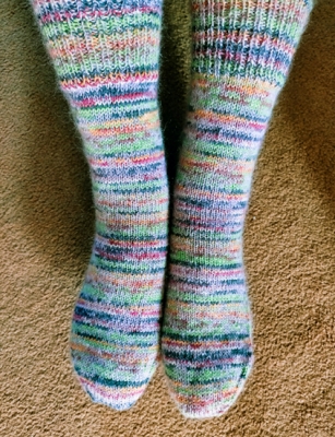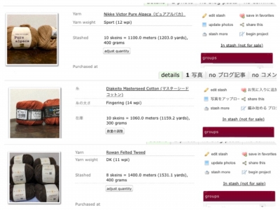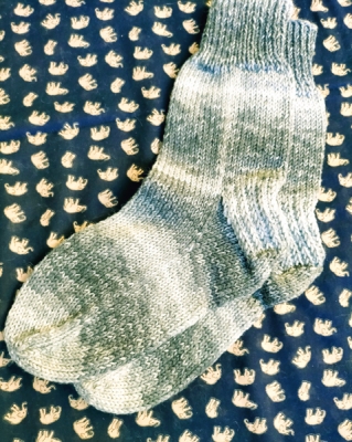 今度は細めのソックヤーンと合細を引き揃えて、靴下を編みました。 Opalの3plyと、長谷川商店のワサビです。 ソックヤーンだけをいつもより細い針で編んでも良かったのですが、中途半端に残っているワサビを活用したかった。 編んでいる間中、色味が合わないような気がして違和感を覚えっぱなしでした。 完成してみたら、これはこれでアリかな? シルクモヘアを合わせたことで、とても暖かくなりました。 むしろ今日の気温でこれ履いていたら、暑い! もう少し寒くなったら、活躍してもらいましょう。 JUGEM...
