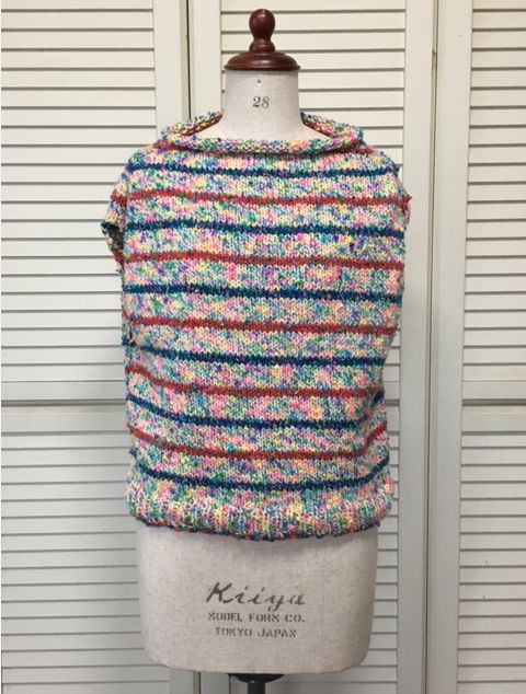 JUGEMテーマ:編み物 ガーター編みカーディガンの余り糸と、同じ糸の色違い2色(なぜか1玉ずつ買ってあった)を組み合わせて、ギリギリ完成できました。糸は罪庫でも新作パターンだとなんとなく新鮮な気分で編めました。