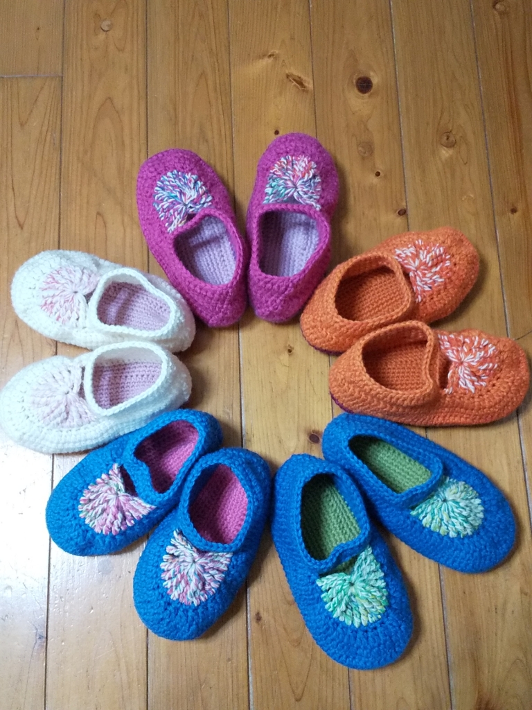 ストラップルームシューズ とるシューズ・第二弾、編みあがりました〜!(´▽`*) 今回はまたちょっと個性的な色が揃いました♪ まさかの白! 自分でも驚きの白なのだけど、可愛い〜! 底はマジェンタ色です。内底はピンク。(*´艸`*) Mサイズ。 マジェンタも内底ピンク。Lサイズ。 オレンジは底はディープマジェンタ。そう、セレス色〜!!! Lサイズ。 「天啓です!」って感じで閃いたものは出来上がるのが早いのだけど、迷う...