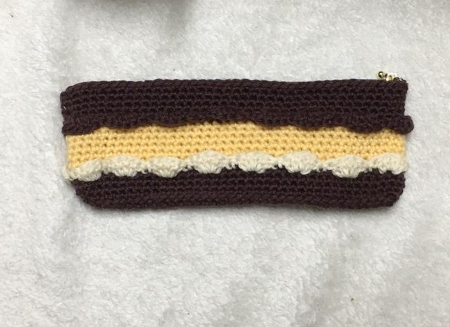 JUGEMテーマ:編み物 本当はキウイエクレアポーチなのですが、好みでキウイ抜きのエクレアポーチにアレンジしました。スマホやブルートゥース機器の充電コード入れにします。