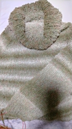 激安処分価格で購入した毛糸、メインクーン。 セーターを編み始めたけど首のチクチクが気になったのでほどき、あえて太めの針でオフタートル気味に襟をふわっとさせて編み直しました。 今度は良い感じ♪ と悦に入りながら編み進み、あとは袖口5cmで完成! というところまで来たのですが。 試着してみたら、チョット待テ。 もともとビッグシルエットなデザインなんですが、それって多分毛糸がシュッとしてないと駄目なやつ。 モコモコのメインクーンでオーバーサイズに編むと、ひたすらデカイ。 モコモコビッグシルエ...
