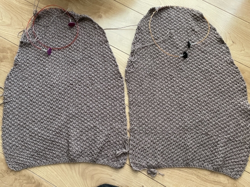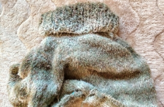 昨年11月に激安価格で購入した毛糸、メインクーン。 トップダウンで編むタートルネックのセーターを編み始めましたが、途中で試着してみると首のチクチクが気になりました。 ほどいて他のものを編もうかと思ったけれど、やっぱりこのパターンが良いな〜。 ってことで、首だけ針サイズを上げて編み直しています。 ゆるゆるにすることで、チクチクを軽減する作戦。 果たしてうまくいくでしょうか。 身頃と袖を分ける直前ですが、なんだか大きい…というか、デ、デデデ、デカイ… でも、つむじ風を編んだ時も、巨大なズタ袋...