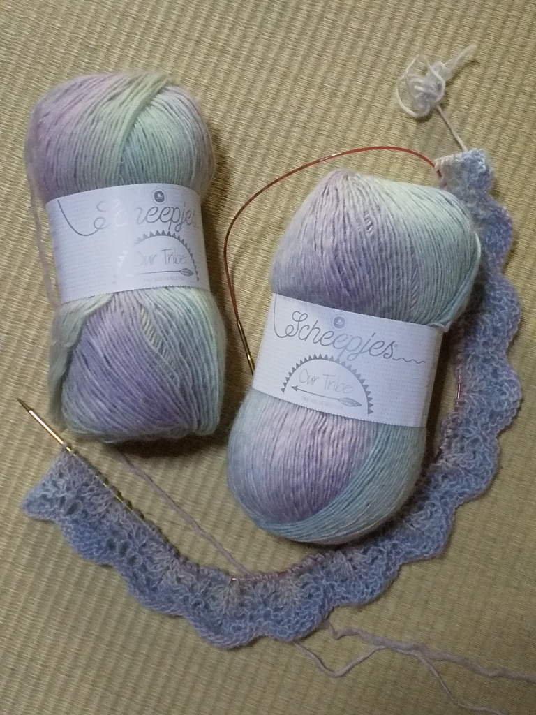 かぎ針で詰めて編むと、なんだかホコリ色に感じてしまった、シェイプイエスCol.シミ―。 玉だとこんな綺麗な色なんだけどな〜。 最初に出てきた色がいまいちだったのかな〜? ソックヤーンだけれど、透かし編みでショールを編み始めました。棒針編みだといい感じ。 普通に靴下編んでも可愛いよね、きっと。 シミ―を一玉編んで、続けてシルバーパーチという薄いベージュのような単色カラーとのバイカラーにしてみようかな。 (*´艸`*) 靴下とお揃いなんて誰も気づかない...