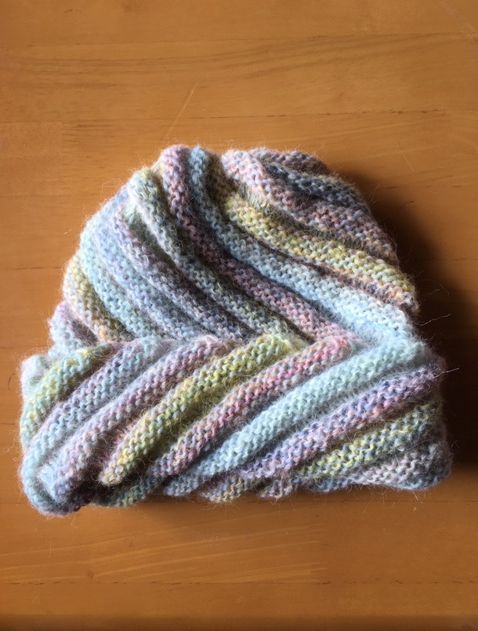 JUGEMテーマ:編み物 10年くらい前に編み物ブログで人気だったかたつむり帽子。編んでみたいと思いつつ、当時はお勤めをしてたので時間がありませんでした。しばらく忘れていたのですが、2〜3年前にキットを見つけて購入。やっと編めました。10年越しに憧れの作品が編めて大満足。 折り返し部分を伸ばすとこんな感じ。