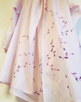 素材と図柄と絵具の関係、 面白くも難しい。 この美しい生地に、 大げさな柄を描くのは もったいない気がして、 最小限に留めました。 生地色は、 さくらの花びらのように 少しグレーがかった 透けるピンク色です。 綿95% 麻5% 柔らかさと強さを合わせ持つ 大人の女性に来てほしい 羽織りもの。 初夏から秋口にかけて 活躍しそうな薄衣です。 ベージュの生地も買ったので、 色違いも作れますよ。 ...