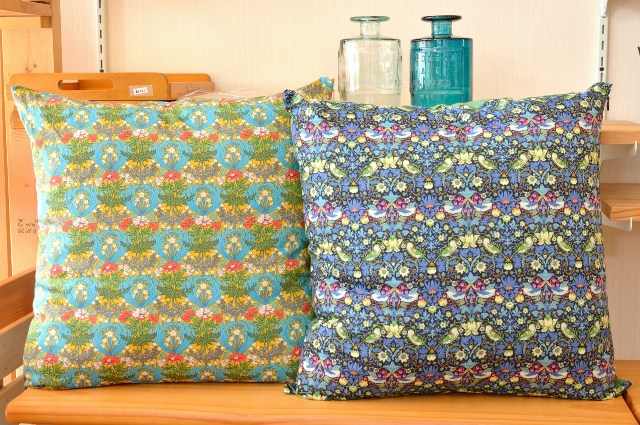 リバティのクッションカバーができました。 Bronwyn (ブロンウィン) と Strawberry Thief (ストロベリーシーフ) きっとリバティはどの柄で作っても可愛い♪ 裏はフレンチリネンを合わせています。 届いたばかりのグリーンとカーキ リバティとフレンチリネンの相性は抜群なので、何色を持ってきてもハズレはないですよ♪ こちらはオーダー品ですが、店売り用もございます。 ...