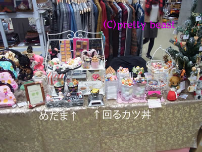 JUGEMテーマ:☆スイーツデコ☆ JUGEMテーマ:愛しのテディベア! ついにデザフェス当日! 直前までばたばたしましたが、何とかブース埋まりました。 今回はもなかの力作「とろとろ卵のカツ丼」が回っております(笑) もなかの丼ものは結構人気で、必ず目をとめて笑って下さる方多数。 まりがたや。 ミニチュアフード+回るっていうのが面白いみたいで。 男子も女子も笑って下さいますね〜。 そして今回の私(知矢)の作品の正に目玉な「めだまシリーズ」。 え〜…小さいお子さんが泣いてしまいました。(...