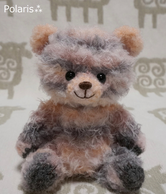 JUGEMテーマ:愛しのテディベア!春先のように あたたかい今日、やさしい色合いの、ベアがやってきました*サムネイルです。写真をクリックすると詳細表示となり、ブラウザの「戻る」で再びこちらの記事に戻ります。毛糸は、ハマナカの「ファーリッシュ グラデーション」。しましま柄のベア と同じ毛糸です。5号かぎ針で編みました。お顔と、鼻まわりは横長の タマゴ形です^^*肉球は、グラデーションの中の1色に合わせ、ハマナカ「グランエトフ」のグレーにしました。座った状態で、高さ約16cmです。*テディベア写真集「P☆s...