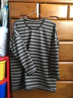 JUGEMテーマ:ニットソーイング♪ パーカーを作りました。 今日のポイントは、フードとプチライン(カバーステッチ)。 薄いところのあるボーダーで、非常に縫いにくい布でした。 でも、これは着られる。パターンも購入。 一応、今日までってことなんだけど、いつでも復活できるから、と言われた。 また気持ちがそっちに向いたら、ね。 帰りにドール服用のボタンなどを購入。 やりたい事がたくさんあるけど、ちゃんとできるのかな、私。