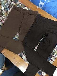 JUGEMテーマ:ニットソーイング♪ 先日作ったNu:パターンのパンツをMサイズで作ったのが左。 右はネットで買ったカット済みパターンのレギンス。 しぇー、みたいですが(笑) Nu:パターンのほうはMでぴったりなスリムパンツでした。 ゆったり目にと思ってLで作るのはよろしくないのかも。 でも市販のボトムはMだとウエストとヒップがね… 昨日、ソーイングクラブでやってた時、隣で縫ってた年配のご婦人に、 「ゴムはねー、ダメよねー。でも私くらいの歳になるとゴムは楽で...
