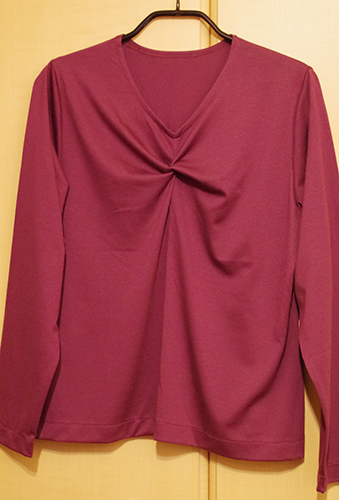 JUGEMテーマ:ニットソーイング♪ ごく普通の長袖Tシャツ。このようにテープで挟んであるものは、市販の服にとっても多いですよね。どうやって作っているのか不思議でしたが、専用のアタッチメントを使うと魔法のように簡単に縫えちゃいましたこりゃハマるこれでAコースは終了