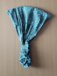 JUGEMテーマ:作った物 暑い中、首回りの髪を縛りたくなるのですが、結ぶほど長くもなく。 それで三角巾みたいなので縛ったらスッキリするかなと思って検索してたら、たまたま見つけました。 残り布で作ってみたのですが、作り方に載ってた寸法だとキッツキッツで。 なんせ頭もデカいのです(笑)。 少し長めにしたらいい感じで、幅が広いので三角巾風に見えます。 クセ毛もスッキリです(笑)。