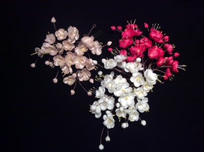 JUGEMテーマ:コサージュ 成人式の髪飾り 4月生まれのお嬢様のためにと お母様から桜の髪飾りをオーダーいただきました。 フランスオートクチュールコサージュの手法で CARREBLANC costume オリジナルの桜を作製しています。 お着物、その方の雰囲気を見ながら色を決めていきます。 一枚一枚カットし、染め、コテあてまで終わりました。 フランス伝統技術、オートクチュールコサージュを学んでみませんか? どこにも販売していない世界でただ...
