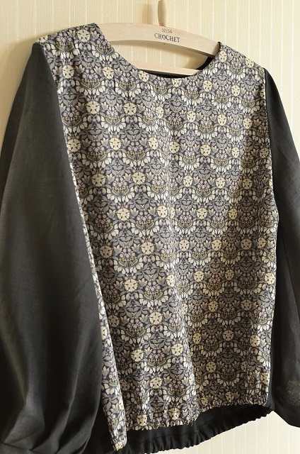LIBERTYPRINT Persephone (ペルセフォネ) と、フレンチリネン40's ブラックを使ったブラウス。 1枚でとても華やかになります。 形は以前ご紹介したブラウスと同じ、ふんわりとした袖に裾を軽く絞ったデザイン。 着心地が楽でいいですよ♪ 全体的にみるとこんな感じ。 先日のイベントでも好評でした(^^) また来週の美山に持っていく予定です。 ...