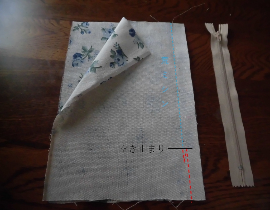 最近、お洋服のファスナーといえば、ほとんどがコンシールファスナーですが、文化ファッション大系テキストだと、このフラットファスナーでの縫製を基本としているので、フラットファスナーを使ってみたいと思います。 1.ファスナーを取り付ける生地を中表に縫います。 ・縫い代は両側2? ・ファスナーの空きどまりにしるしをつけておきます。 ・空きどまりまでは、荒ミシンで縫い、空きどまり以降は、 3針進め返し縫いで標準目に直して最後まで縫います。 ...