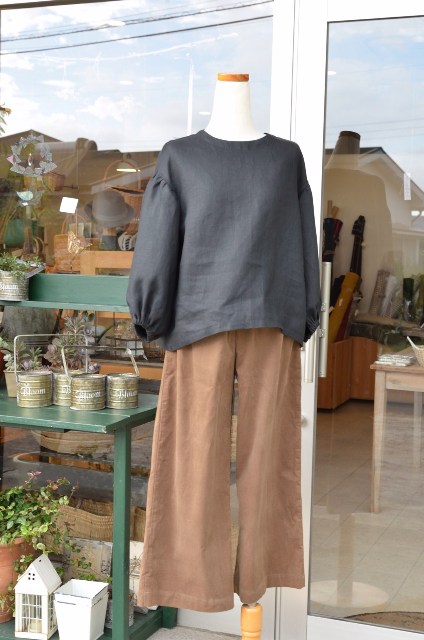 先日のコーデュロイパンツと一緒にUPしたギャザーブラウス 定番の生地 フレンチリネン 40's ブラック リネンで作ったら可愛いだろうなあ・・と思っていたら、バッチリ! 袖の感じが何とも言えないのです。 ドロップショルダーなので着てみたらわかる着心地の良さ♪ そして少し前上りになっているので出して着てもスッキリとしたライン 今度は フレンチリ...